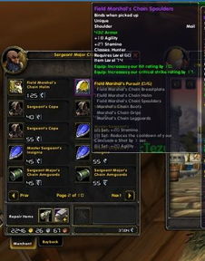 2. 荣誉兑换:在达到R13的情况下,每个职业都可以购买到两套职业装,一套稀有和一套史诗等级。在集齐2件、4件和6件的情况下,都会获得相应的套装属性,相同的职业区分部落和联盟的阵营外观。