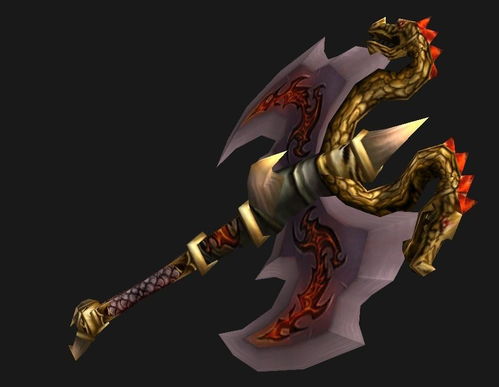 巨龙复仇者,这名字听起来就让人热血沸腾。它是一把双手斧,外观霸气,上面镶嵌着两条巨龙,红白相间,简直帅到没朋友!这把武器在魔兽世界60级40人团队副本黑翼之巢中,是小怪死爪龙人护卫的掉落物品。